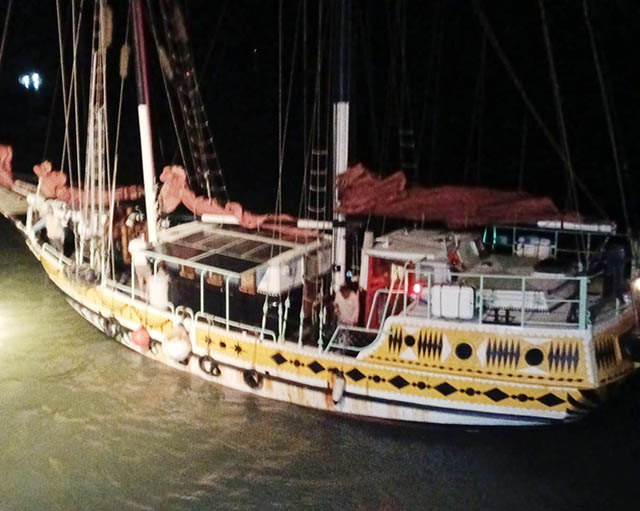 Penyelamatan kapal survei Motor Yacht Arka Kinari yang mengalami blackout engine di perairan sekitar buoy No. 5 Pelabuhan Tanjung Intan Cilacap, Selasa malam (29/07/2025). Foto: Pelindo