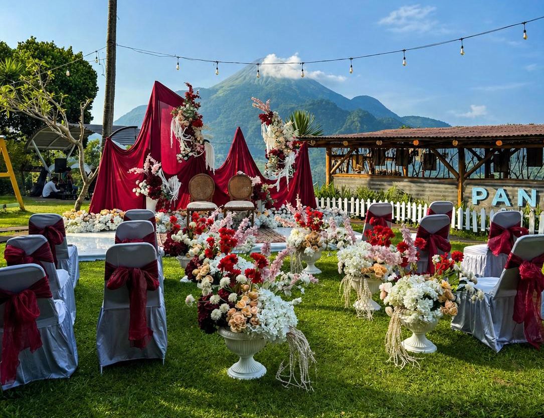 Berlokasi di Panorama Cafe Trawas, konsep yang diusung jauh dari format wedding fair konvensional. Pengunjung tidak hanya melihat inspirasi di atas kertas, melainkan diajak masuk ke dalam simulasi pernikahan melalui mockup wedding yang dirancang detail dan aplikatif. Mulai dari tema glamour yang elegan, modern minimalis, hingga nuansa rustic berpadu lanskap alam Trawas, seluruhnya disusun untuk memberi gambaran utuh tentang bagaimana sebuah pernikahan benar-benar terasa.