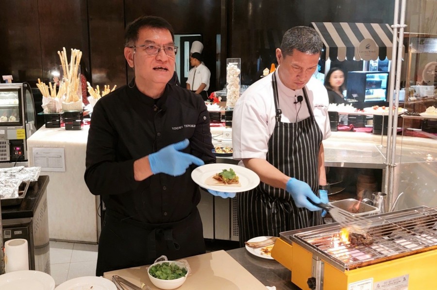 Chef Vindex Tengker Hadirkan Aksi Memasak Live di Flame Fiesta Buffet Dinner.