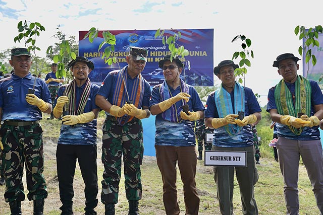 KUPANG, Investor Jatim – Memperingati Hari Lingkungan Hidup Sedunia 2025, PT Pelindo Terminal Petikemas (SPTP), Sub Holding BUMN Pelindo, bersama dengan Komando Armada II Pangkalan Utama TNI Angkatan Laut (Lantamal) VII Kupang berhasil melaksanakan penanaman 5.000 bibit pohon di Embung Noelpopo, Kupang, Kamis (05/06/2025).