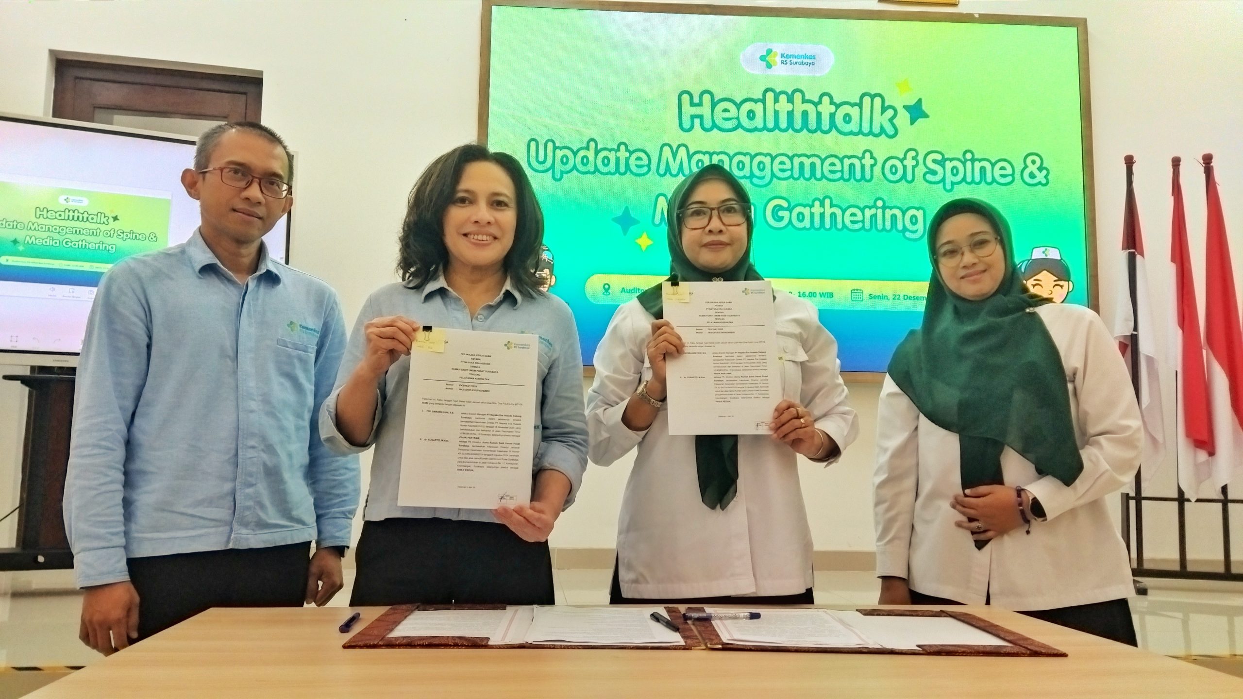 dr. Martha (dua dari kiri) setelah melakukan penandatanganan kerja sama dengan Nayaka Era Husada, di RSUP Kemenkes Surabaya, Senin (22/12/2025).