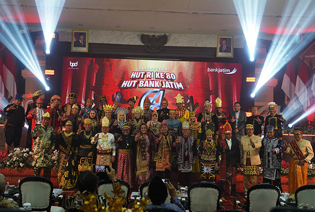 Peringatan Hari Ulang Tahun (HUT) Republik Indonesia Ke-80 dan sekaligus HUT PT Bank Pembangunan Daerah Jawa Timur Tbk (Bank Jatim) Ke-64 berlangsung meriah. Foto: Bank Jatim