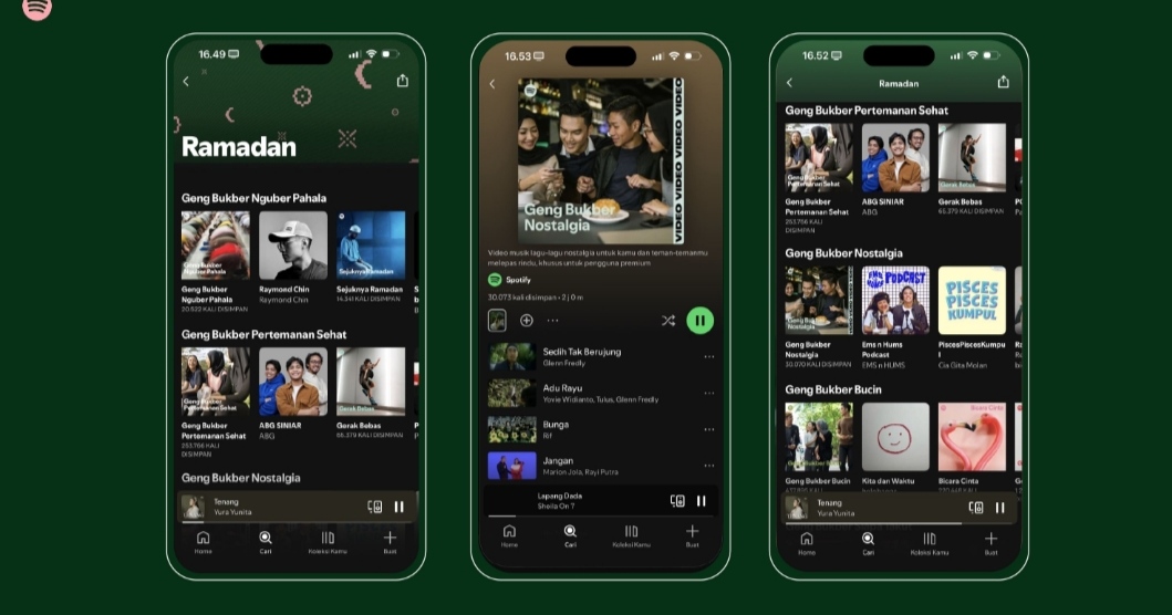 Tradisi buka puasa bersama (bukber), misalnya, mempertemukan kembali teman sekolah, rekan kerja lama, hingga komunitas yang mungkin hanya bersua setahun sekali. Setiap kelompok memiliki “soundtrack” khas yang merepresentasikan masanya. Fenomena ini tercermin dalam meningkatnya minat terhadap playlist nostalgia seperti Terbaik 2000an dan Ngetren 2010an. Di sisi lain, bagi pengguna yang memilih suasana lebih khusyuk, playlist seperti Sejuknya Ramadan dan Ramadan Kamu 2026 menjadi alternatif untuk menghadirkan atmosfer yang lebih tenang.